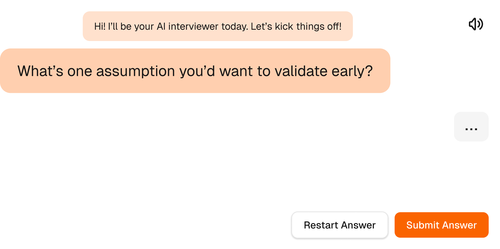 Pick an interview question you want to practice; or let your AI Interviewer pick a question for you. Focus on the areas you want to improve most.