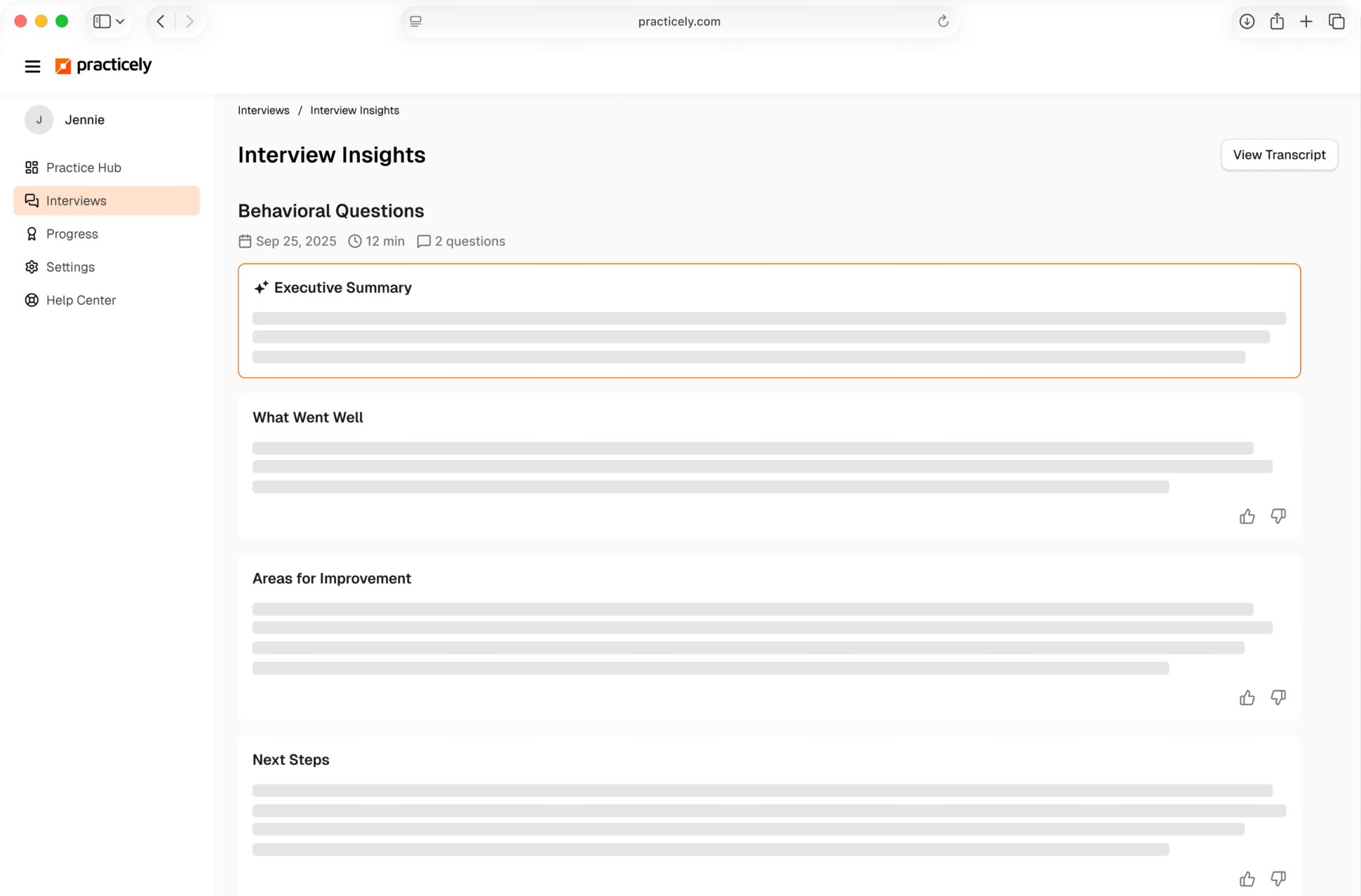 Personalized feedback and actionable next steps - accelerating your interview skill improvement through every session